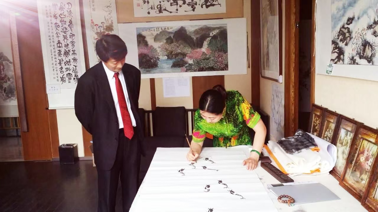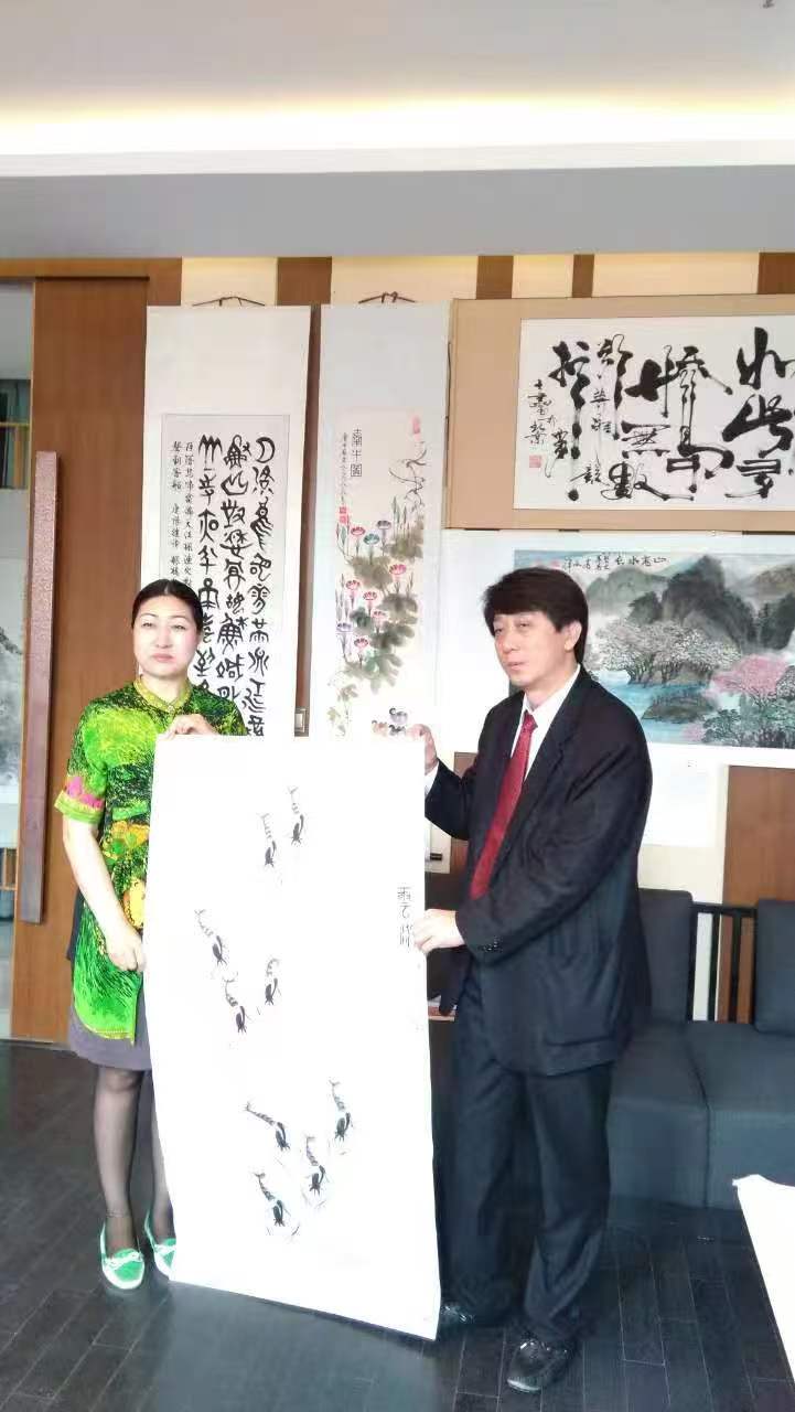 墨韵东瀛:艺术家翟永玲(心瑀)向日本华侨总工会主席郑世伟赠画,共话中日文化交流